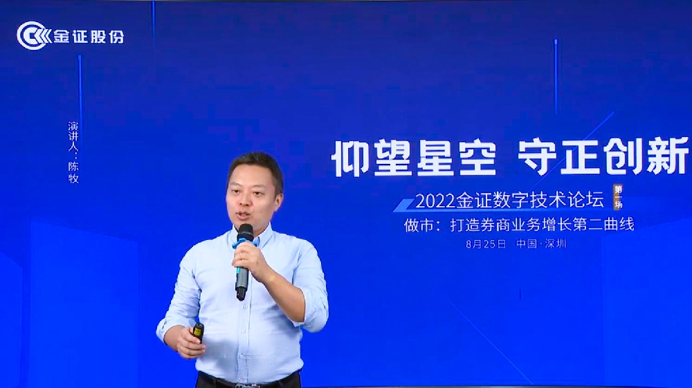金證股份做市產品事業部總監陳牧針對行業IT系統如何支持做市業務發展的議題,做了《做市2.0:極速、開放的全業務做市中臺》的分享。