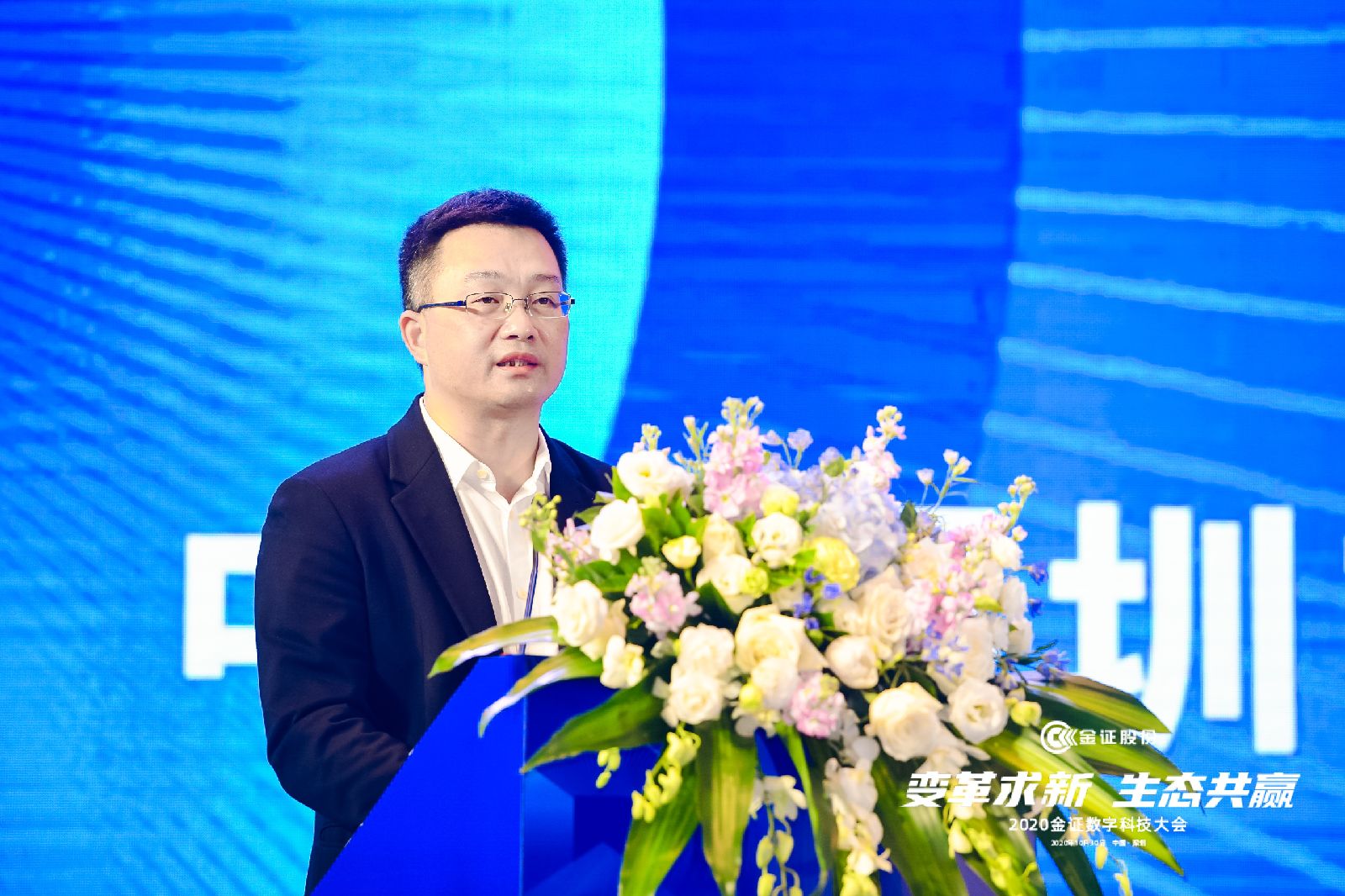 中共深圳市寶安區委常委、區政府黨組副書記、副區長蔡英權出席大會并致辭。他表示,金證是國內金融科技領軍企業,深耕行業20余年,今天以“變革求新 生態共贏”為主題舉辦數字科技大會,共同探討“金融+科技”的賦能與融合,具有十分重要的意義。