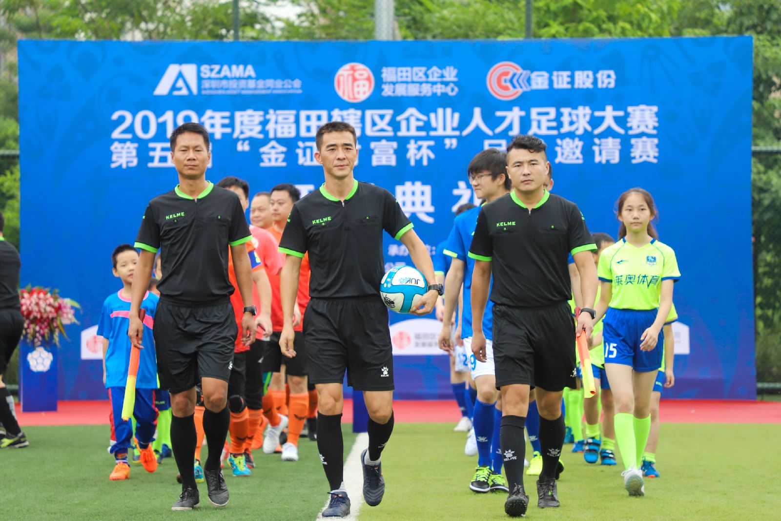 本屆“金證財富杯”足球邀請賽開幕式在深圳香蜜體育中心舉行。本屆比賽,由福田區(qū)企業(yè)發(fā)展服務中心主辦、深圳市投資基金同業(yè)公會承辦、深圳市金證科技股份有限公司、深圳市萊奧體育發(fā)展有限公司協(xié)辦,比賽吸引了40家非公經(jīng)濟黨組織、福田區(qū)企業(yè)、行業(yè)協(xié)會會員單位、受邀單位等獨立或聯(lián)合組成的32支隊伍,608人參加。在接下來一個半月的比賽時中,將上演64場精彩絕倫的比賽,讓熱愛足球的觀眾大飽眼福。