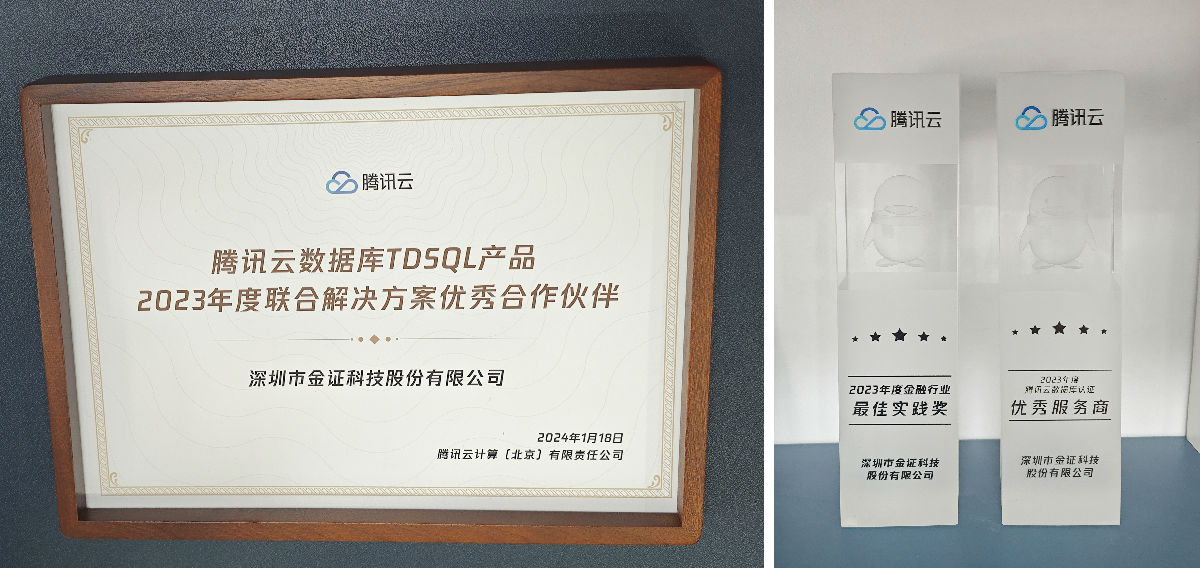 作為騰訊云在金融行業的重要戰略合作伙伴,金證股份受邀參加,并現場獲頒“騰訊云數據庫TDSQL產品聯合解決方案優秀合作伙伴”、“騰訊云數據庫認證優秀服務商”、“金融行業最佳實踐獎”。