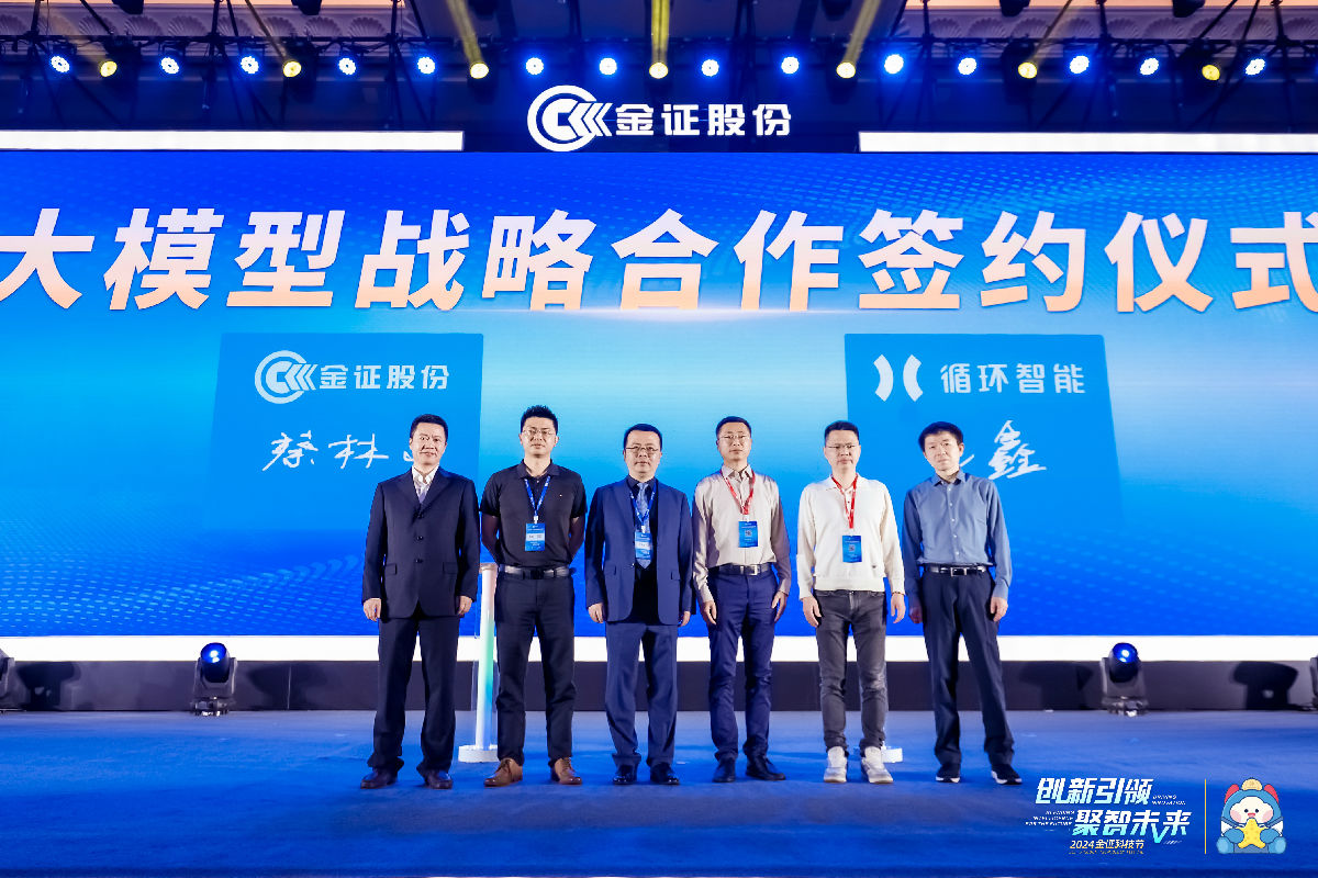 5月31日,“2024金證科技節”在珠海成功舉行。會上,金證股份與行業大模型及會話智能領先科技公司循環智能,就“大模型在金融行業垂直領域應用”舉行深度合作簽約儀式。金證股份CTO蔡林山、循環智能副總裁李鑫代表雙方簽署協議。金證股份總裁王清若、首席信息官廖亞濱;循環智能聯合創始人兼首席運營官揭發、金融事業部總經理梁藝共同出席并見證此次簽約。