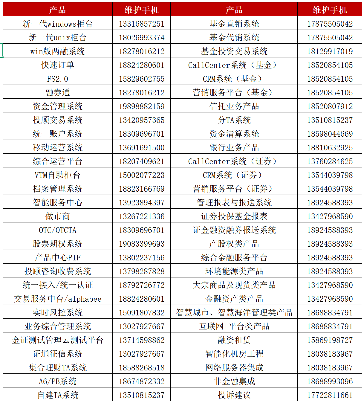 應急聯系:若遇客服熱線無法接通,可直接撥打對應系統維護手機咨詢,具體聯系方式如下: